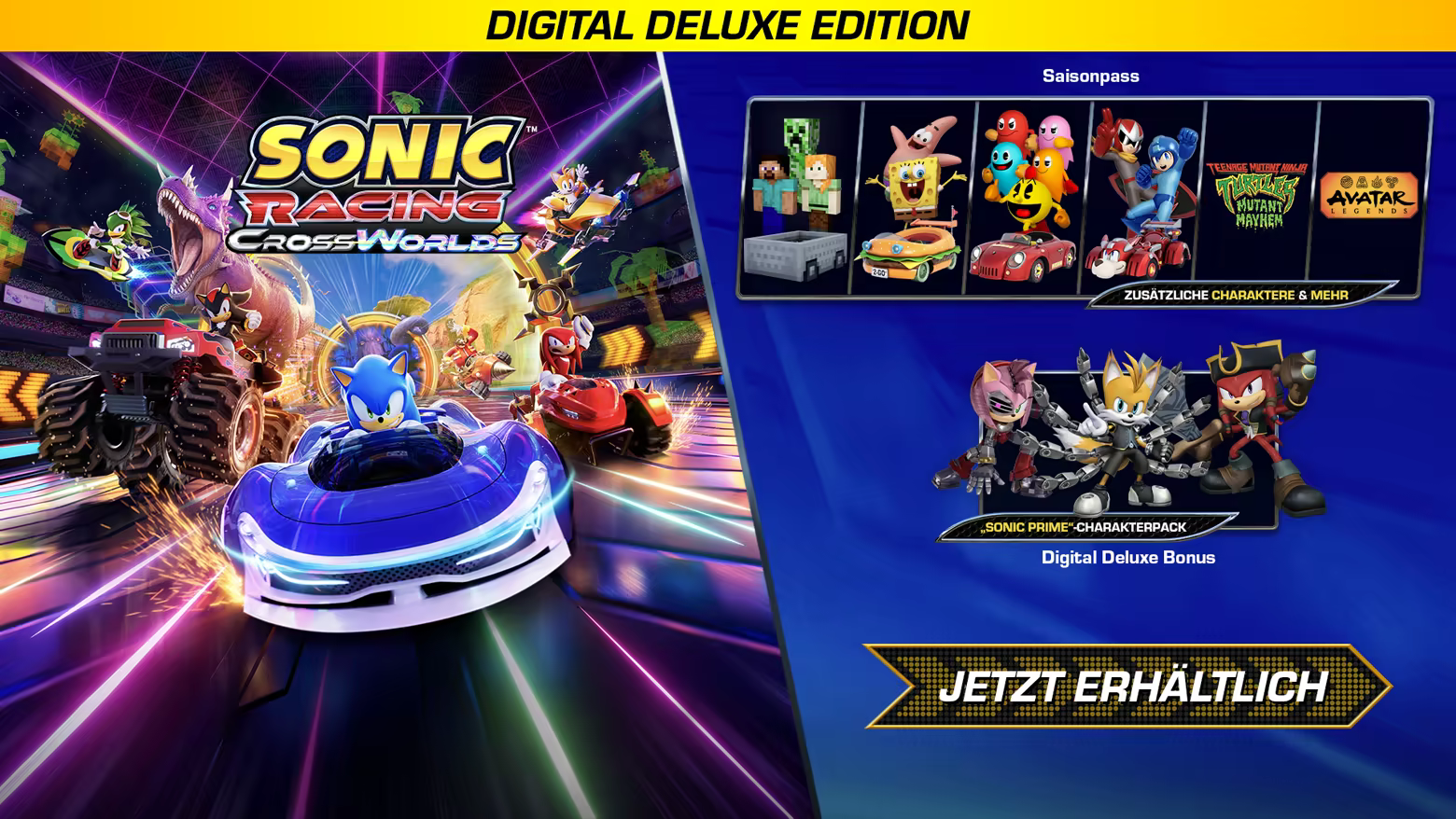 Für alle, die ihr Erlebnis erweitern möchten, gibt es Premium-Inhalte über den Saisonpass, der Gast-CrossOver aus Franchises wie SpongeBob Schwammkopf und Minecraft umfasst. Die Charakterpacks aus dem Saisonpass enthalten 2 bis 4 Rennfahrer***, neue Strecken, Aufkleber und Sounds zur Individualisierung deines Fahrzeugs, zusätzliche Musik, Gadgets und vieles mehr.